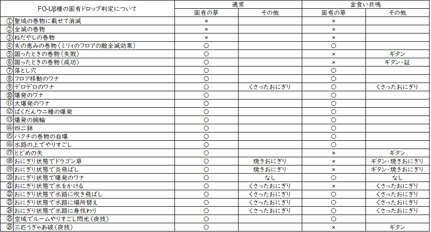 ④~㉖についてはギタンになる場合と固有の草をドロップする場合に分かれた。