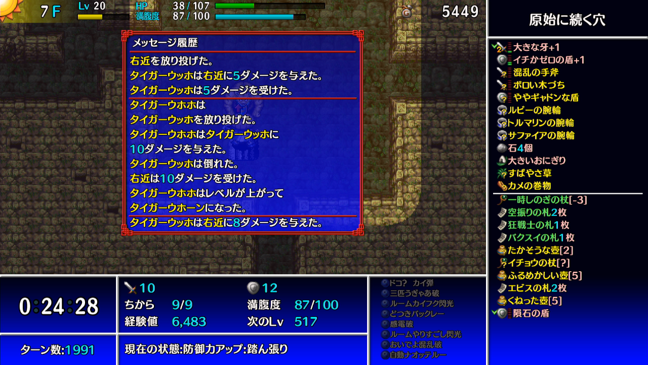 シレンのレベル5、ちから8、素手だと1ダメージ