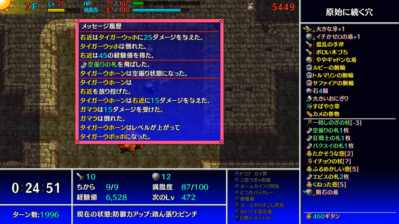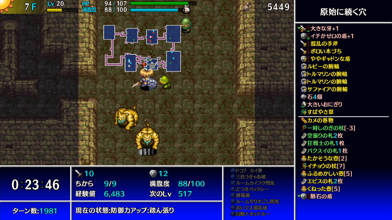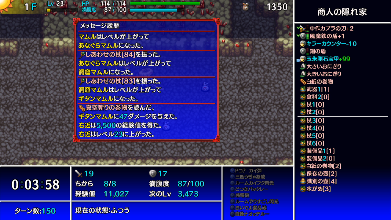 ただしギタンマムル自体の防御力が高い(防御38)為、シレンのレベルや攻撃力が低いと